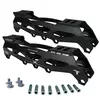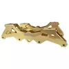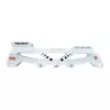 A Base Híbrida Traxart é uma base de alumínio CNC e possui furação que possibilita duas configurações: pode ser utilizada com 3 rodas de 110mm ou 4 rodas de 80mm. Essa base tem furação universal 165mm, sendo compatível com patins freestyle do #4 ao #12.